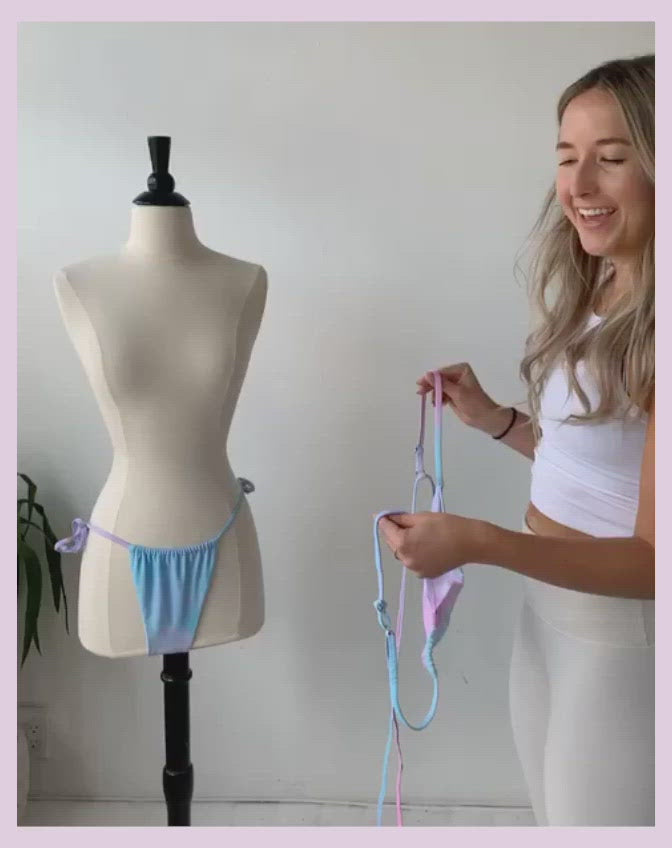 Introducing the Callie Top, our sexy and minimal take on a classic bandeau. Sporting a little less coverage on the sides, the Callie Top is ideal for sunbaes who prefer stringy styles. With slim straps channeled through her side seams, you can slide the bandeau piece to customize your coverage.